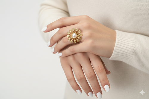Aurora Halo Pearl Ring | Premium Handcrafted Jewellery
